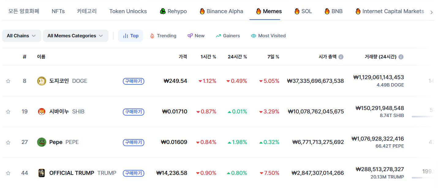 - 바이낸스 상장 후 급등: 밈코인 중 드물게 바이낸스 상장에 성공하며 시가총액 1조 원 이상 돌파